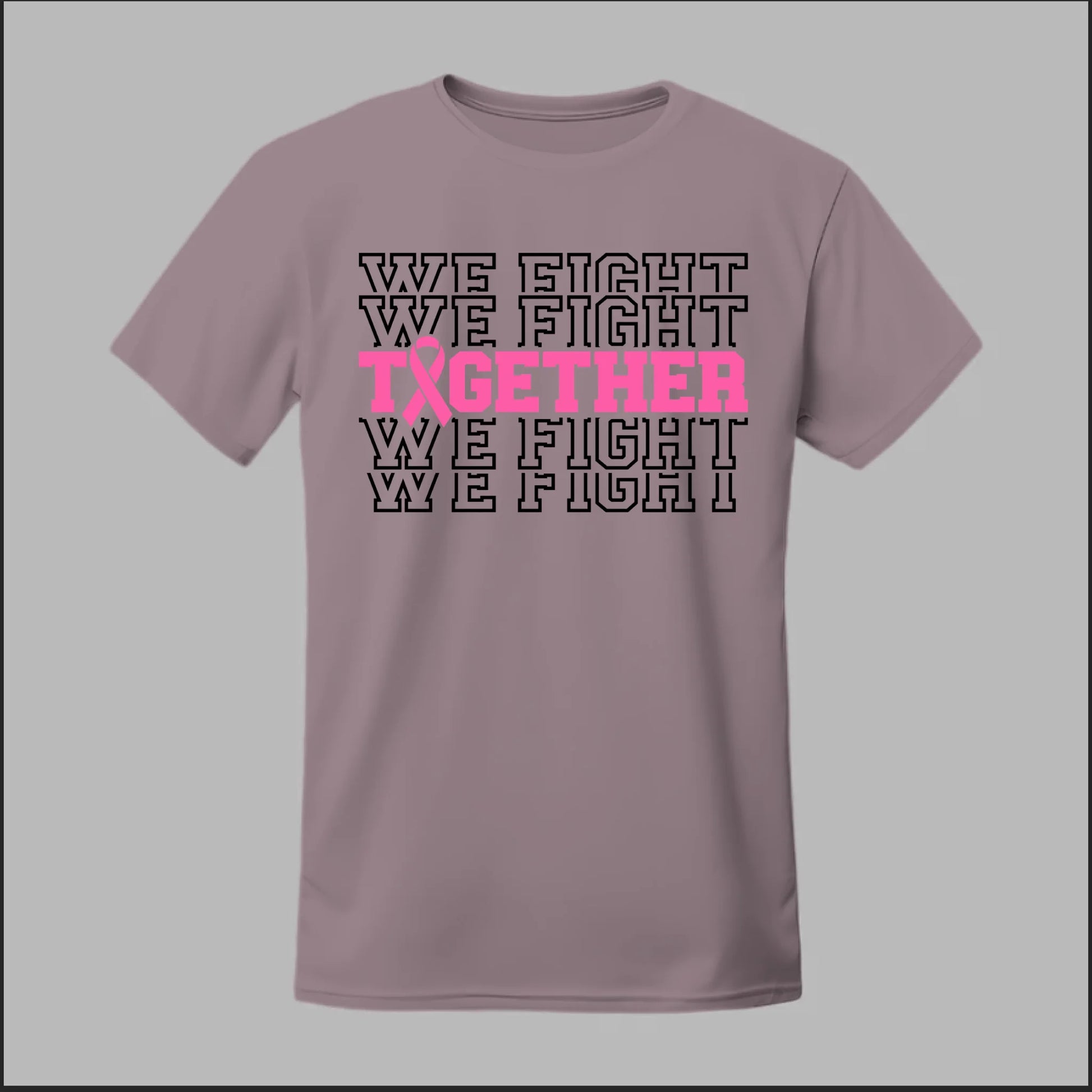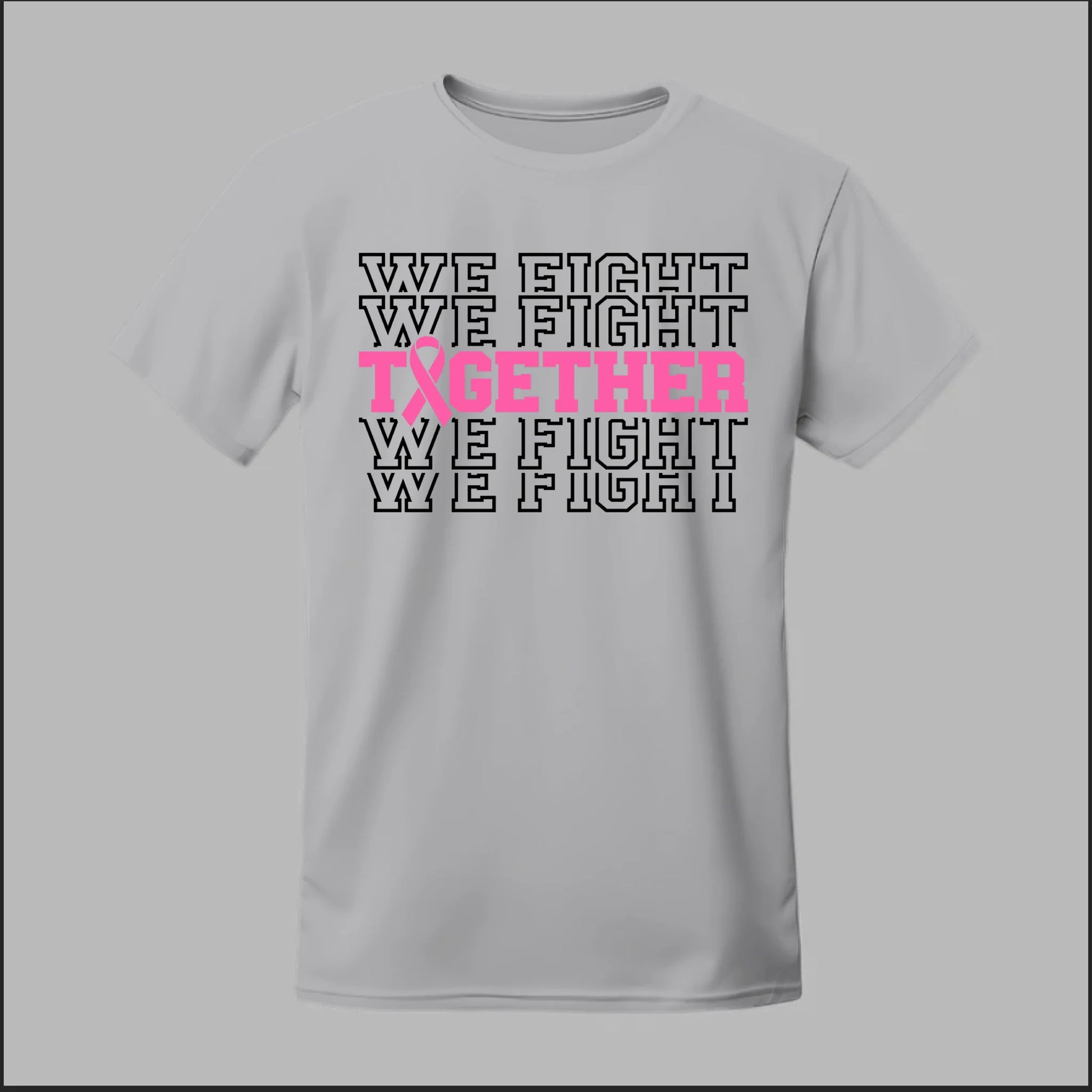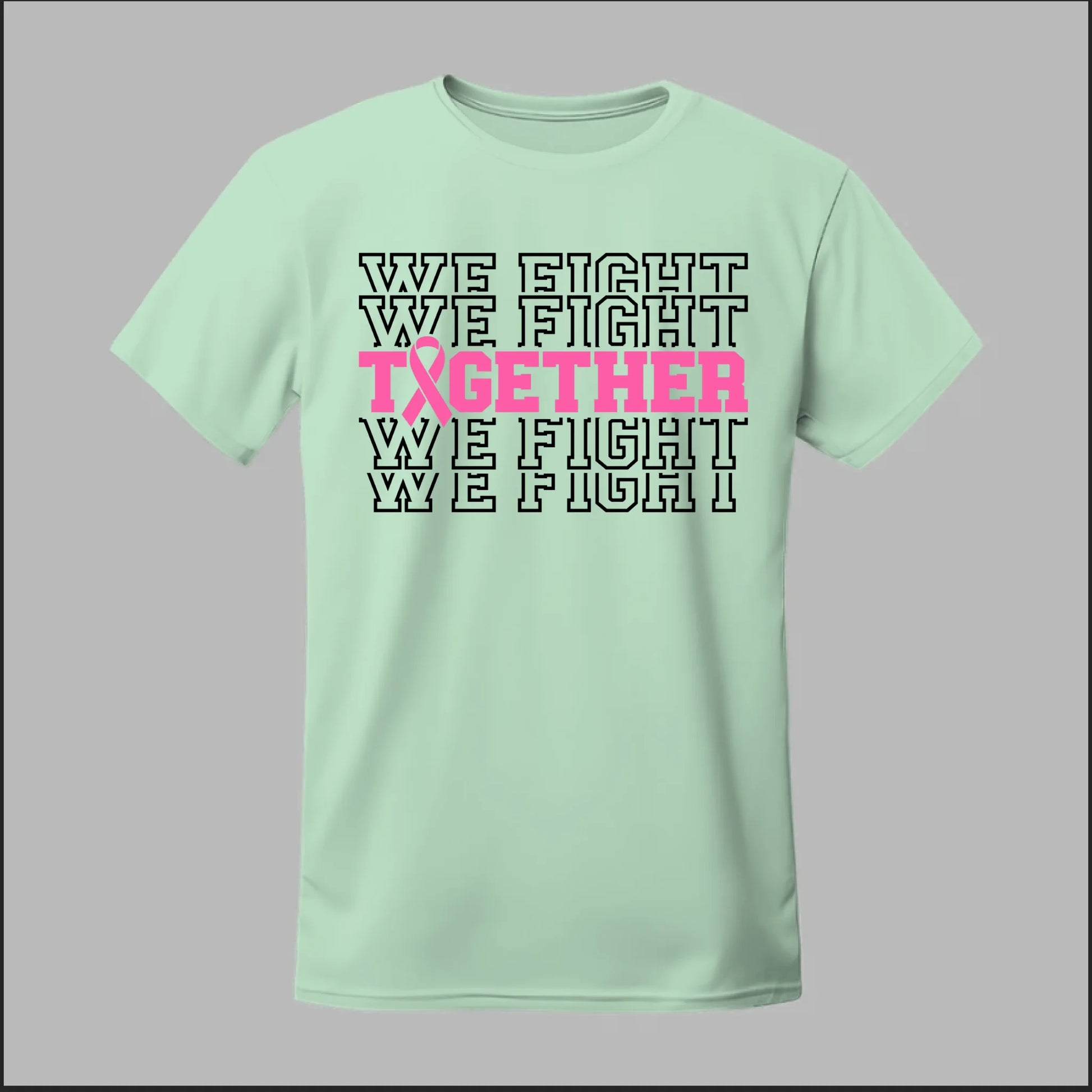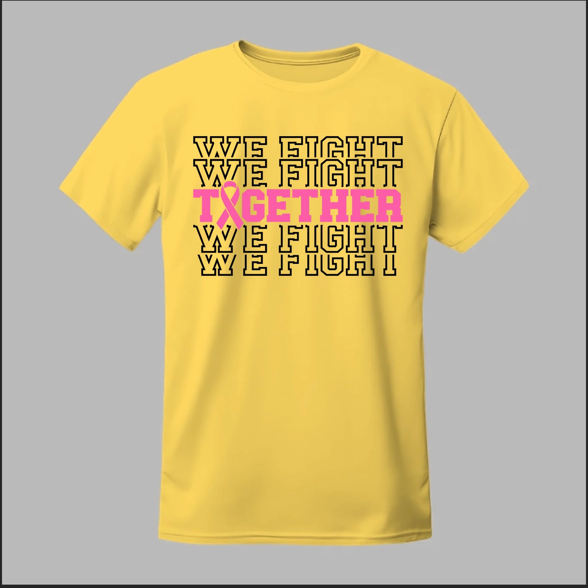 Make a bold stand with the "Together We Fight" tee in striking black. The vivid pink ribbon and lettering pop against the dark background, creating a high-impact design perfect for Breast Cancer Awareness events and everyday wear. Built for comfort and durability, this shirt is both a show of solidarity and a call to action — because united, we fight stronger.