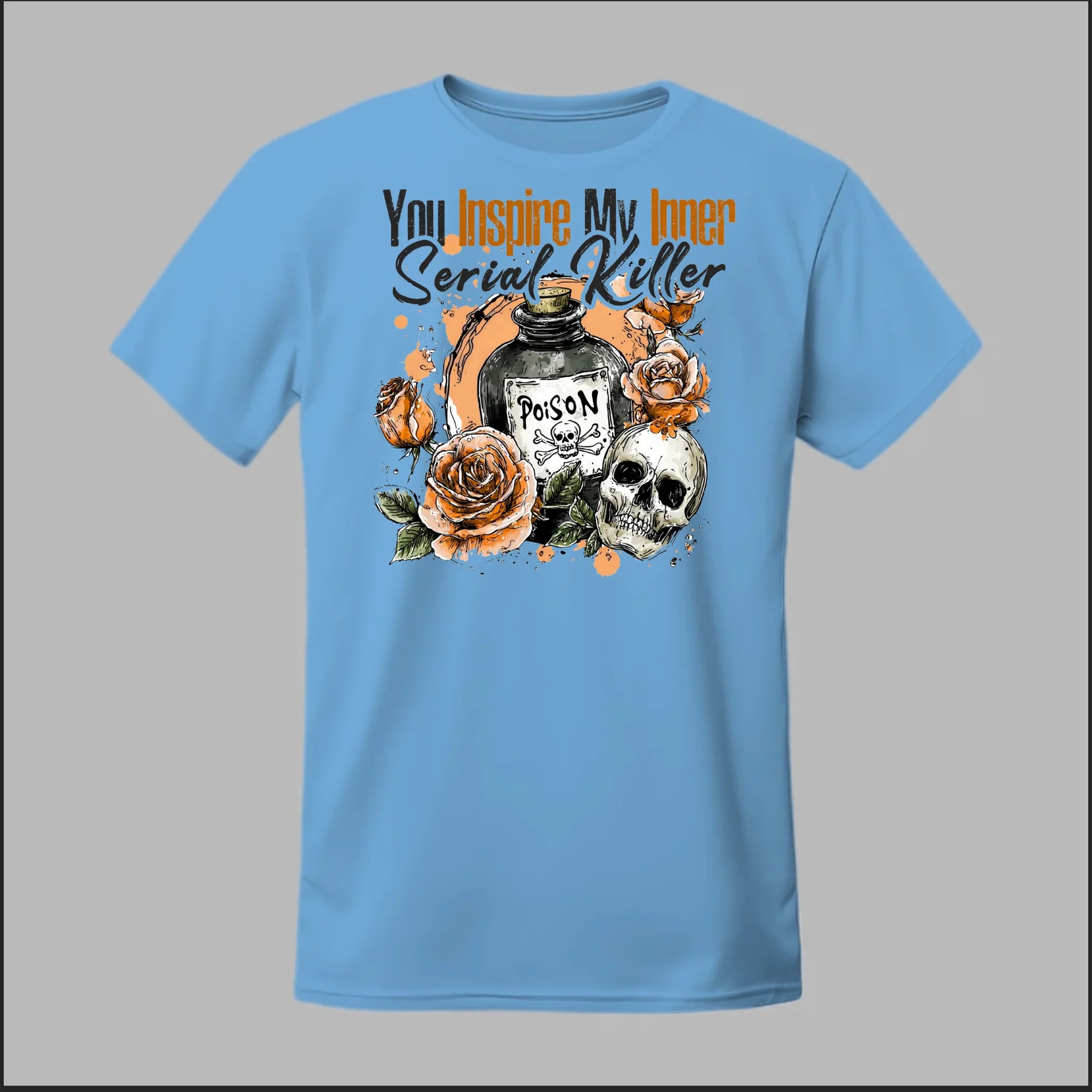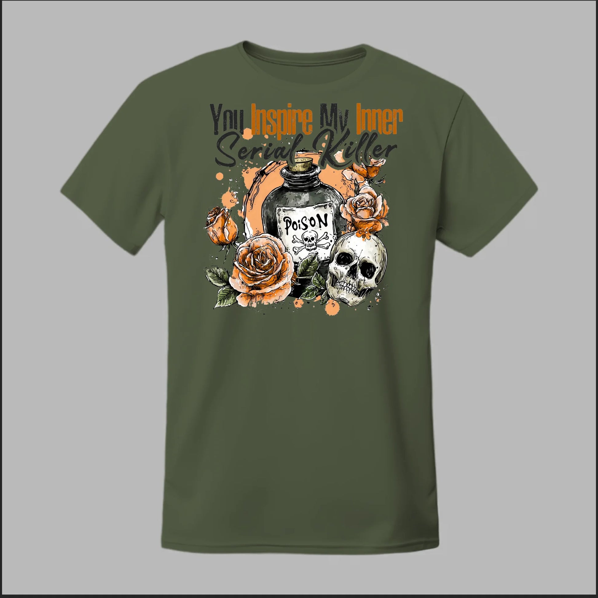 Dark humor meets art. “Inner Chaos” combines gothic roses, a poison bottle, and skull details with edgy typography. Perfect for those with a sharp wit and a bold aesthetic.